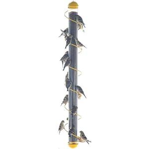 36-inches tall. Patented spiral perch attracts more birds and allows more birds to feed. Birds love to perch on the patented spiral and "run the spiral" instead of flying to another perch. Aluminum and stainless steel construction with a clear molded seed tube. The feeders also feature a squirrel-proof patented "locking lid. (more...)